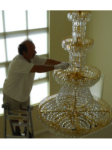 - Jessie B.: "Finding someone to clean chandeliers these days and do a professional job is not an easy task. I had contacted another company who gave me an estimate to clean 9 crystal sconces and 8 chandeliers. Wow! Talk about break the bank! Then luckily I came across Sasha. He gave me an estimate based on photos I sent him. The estimate was a much more reasonable price. I decided I would rather have one person working on the chandeliers than a crew of people. Things are much more likely to get broken or overlooked when there are a number of people. Sasha was prompt, polite and did a spectacular job. The chandeliers are beautiful again. I can't recommend him highly enough."